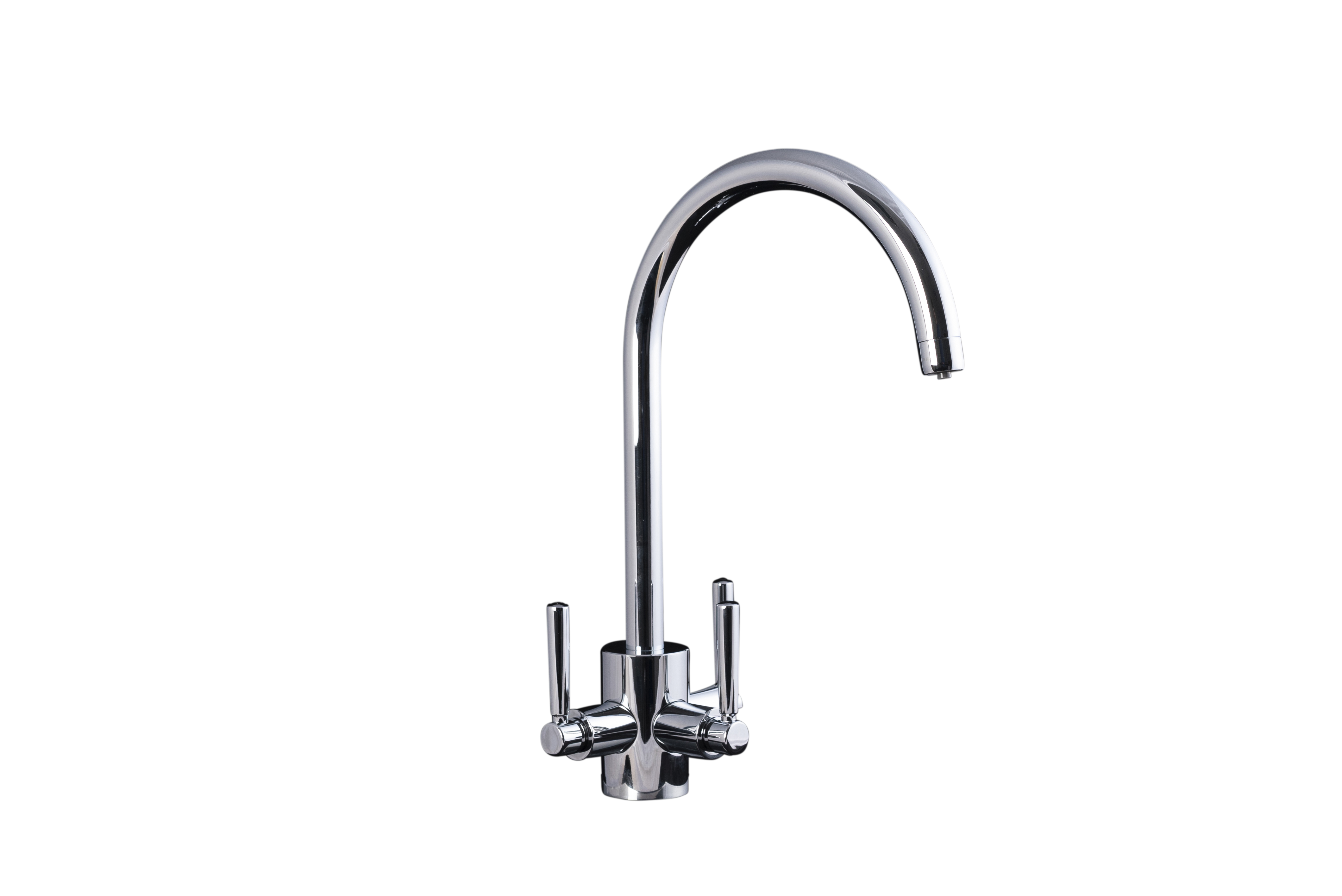 The Nouveau 3-Way Kitchen Mixer Tap is a modern design that offers softened hot, cold water and filtered drinking water.